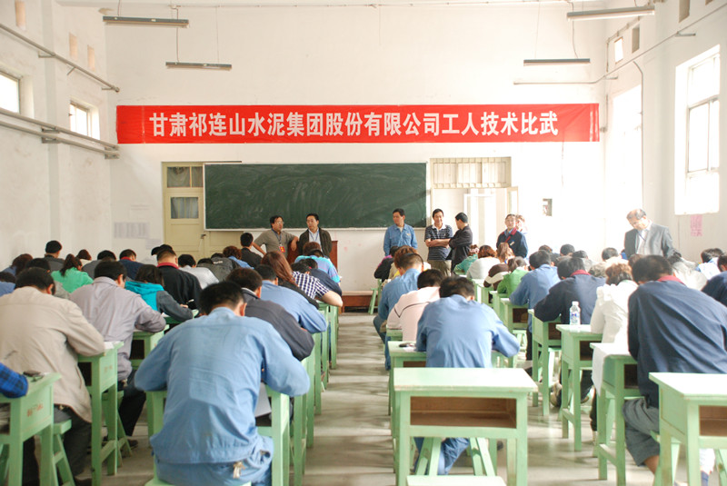 9月9日,公司职工技术比武理论考试分别在永登公司和天水公司进行。来自永登、红古、天水、平凉、青海、甘谷、成县、漳县公司的150余名电、钳、焊工种和窑磨中控操作员、质量控制工参加了考试。图为天水公司考场情景。